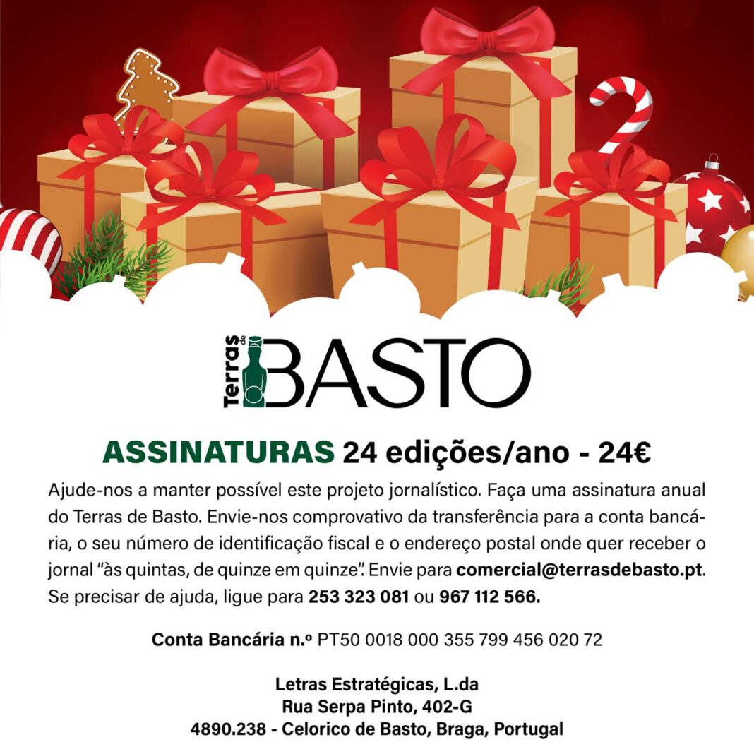 Top da Semana Mais uma ótima edição do Terras de Basto Artigo de opinião João Paulo Mesquita - 21 de Janeiro, 2026 Minho promove-se na FITUR com prémios de charme Cabeceiras de Basto João Paulo Mesquita - 19 de Janeiro, 2026 Aterro de Codeçoso: Câmara reafirma «clara discordância» com apliação Celorico de Basto João Paulo Mesquita - 14 de Janeiro, 2026 Mais lixo para Codeçoso: projeto prevê aumentar capacidade para 2.865.563 toneladas Cabeceiras de Basto João Paulo Mesquita - 14 de Janeiro, 2026 Cabeceiras recolha toneladas de lixo clandestino Cabeceiras de Basto João Paulo Mesquita - 13 de Janeiro, 2026 Related Posts Mais uma ótima edição do Terras de Basto Cabeceiras de Basto Mais uma ótima edição do Terras de Basto Cabeceiras de Basto Bispos começam domingo visitas a Celorico Celorico de Basto Mais uma ótima edição do Terras de Basto Artigo de opinião Tomada de posse em Ribeira de Pena Ribeira de Pena Sem categoria Ofereça uma assinatura anual do Terras de Basto. Ajude-nos a manter este projeto jornalístico. Sem categoria Author: João Paulo Mesquita 2 de Dezembro, 2025 Less than 1 min.read FacebookTwitterPinterestWhatsApp Artigo anteriorCabeceiras: Manuel Gonçalves demite-se da direção da bancada socialista na AssembleiaPróximo artigoSaúde do Alto Ave distinguida pelos percursos de cuidados integrados João Paulo Mesquita DEIXE UMA RESPOSTA Cancelar resposta Comentário: Por favor digite seu comentário! Nome:* Por favor, digite seu nome aqui E-mail:* Você digitou um endereço de e-mail incorreto! Por favor, digite seu endereço de e-mail aqui Site: Salve meu nome, e-mail e site neste navegador para a próxima vez que eu comentar. Popular Articles Mais uma ótima edição do Terras de Basto Minho promove-se na FITUR com prémios de charme Aterro de Codeçoso: Câmara reafirma «clara discordância» com apliação Mais lixo para Codeçoso: projeto prevê aumentar capacidade para 2.865.563 toneladas Cabeceiras recolha toneladas de lixo clandestino